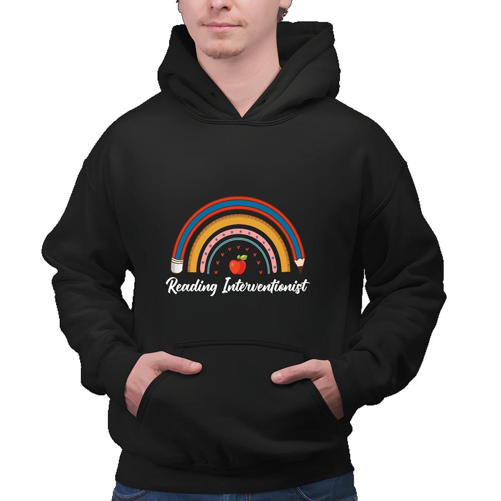 Reading interventionist reading Teacher Specialist rainbow Black and Muticolor Unisex Hoodie