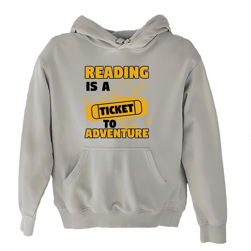 Reading is a Ticket to adventure for Bookworm Book Lover Reader White and Muticolor Unisex Hoodie