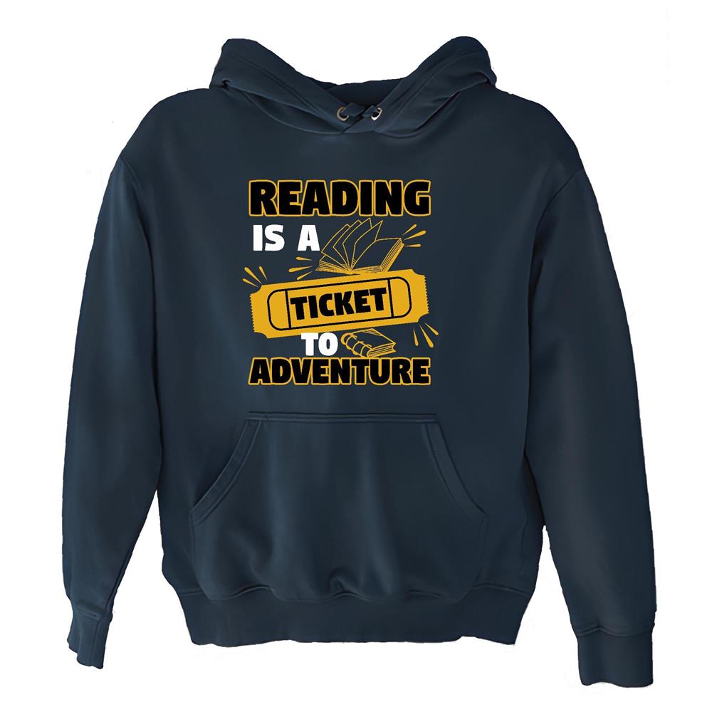 Reading is a Ticket to adventure for Bookworm Book Lover Reader Navy and Muticolor Unisex Hoodie