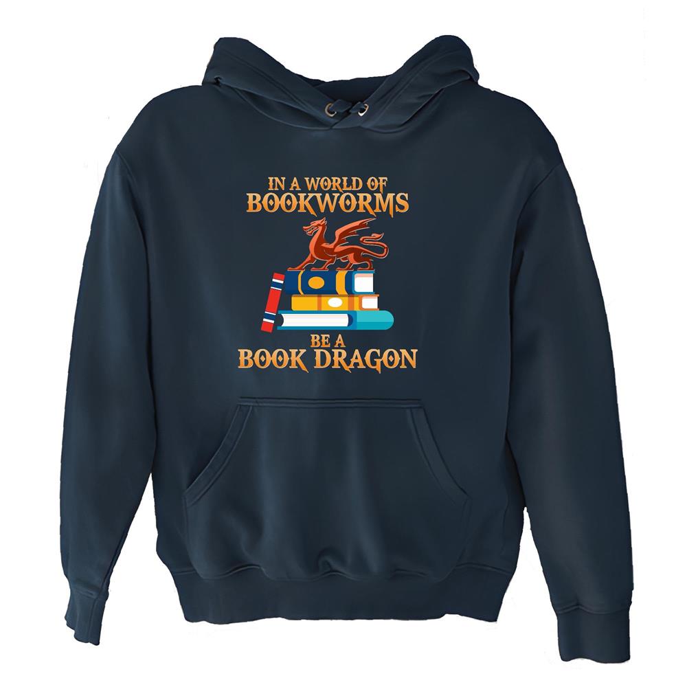 Reading in a world of Bookworms be a book Dragon for Reader Bibliophile Book Lovers Navy and Muticolor Unisex Hoodie