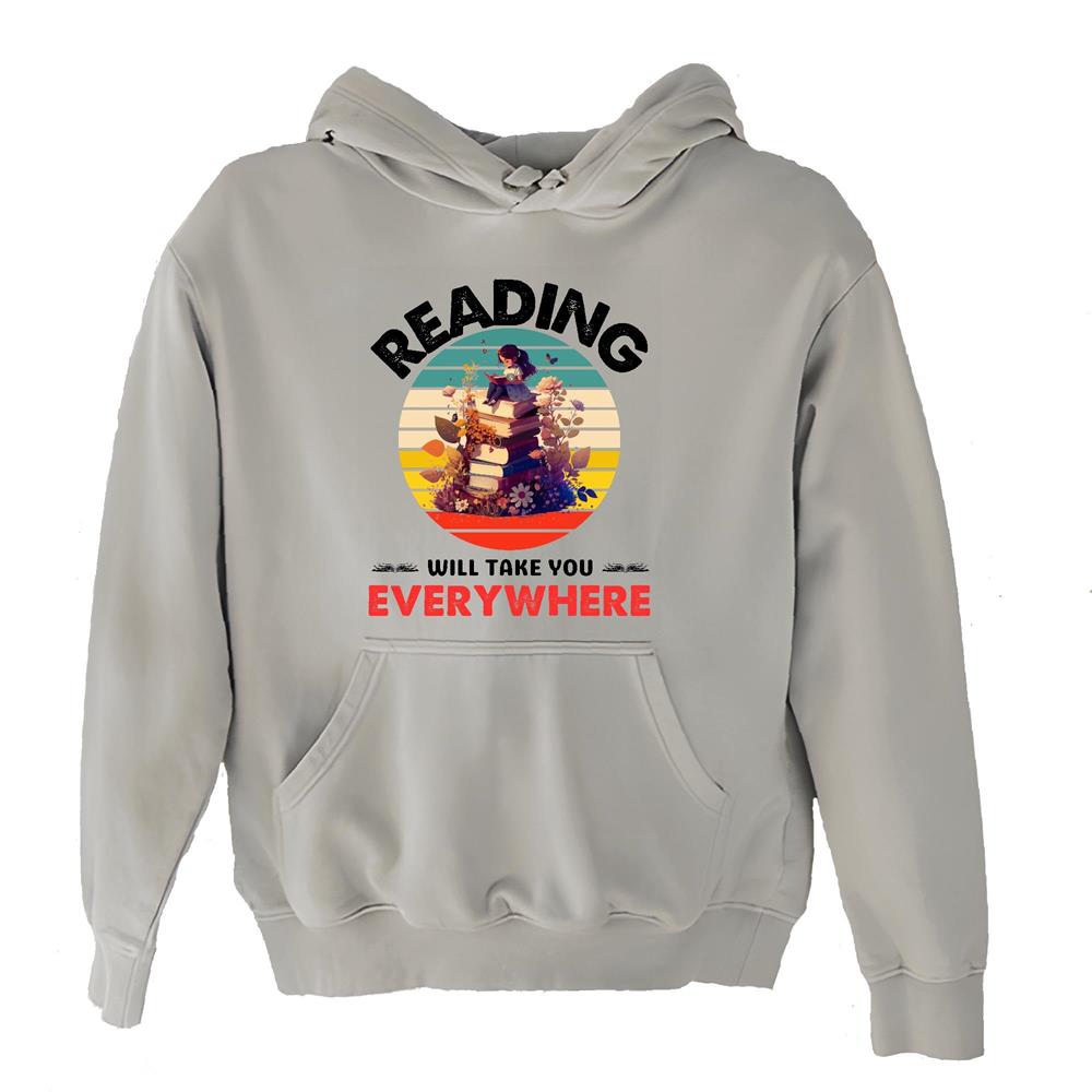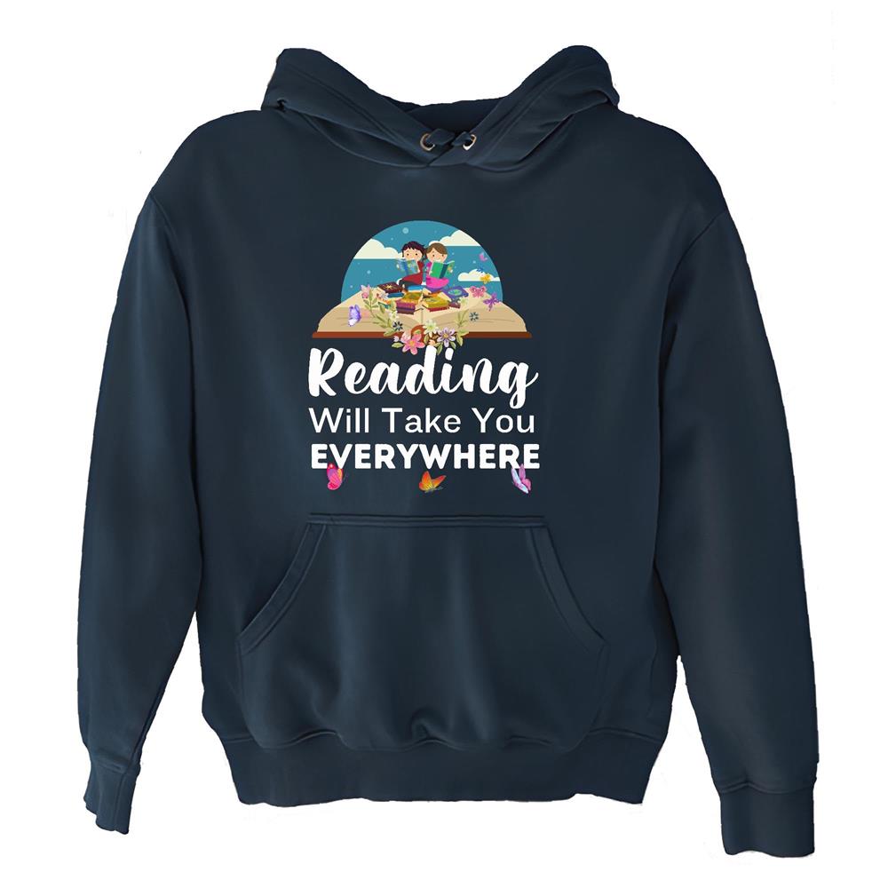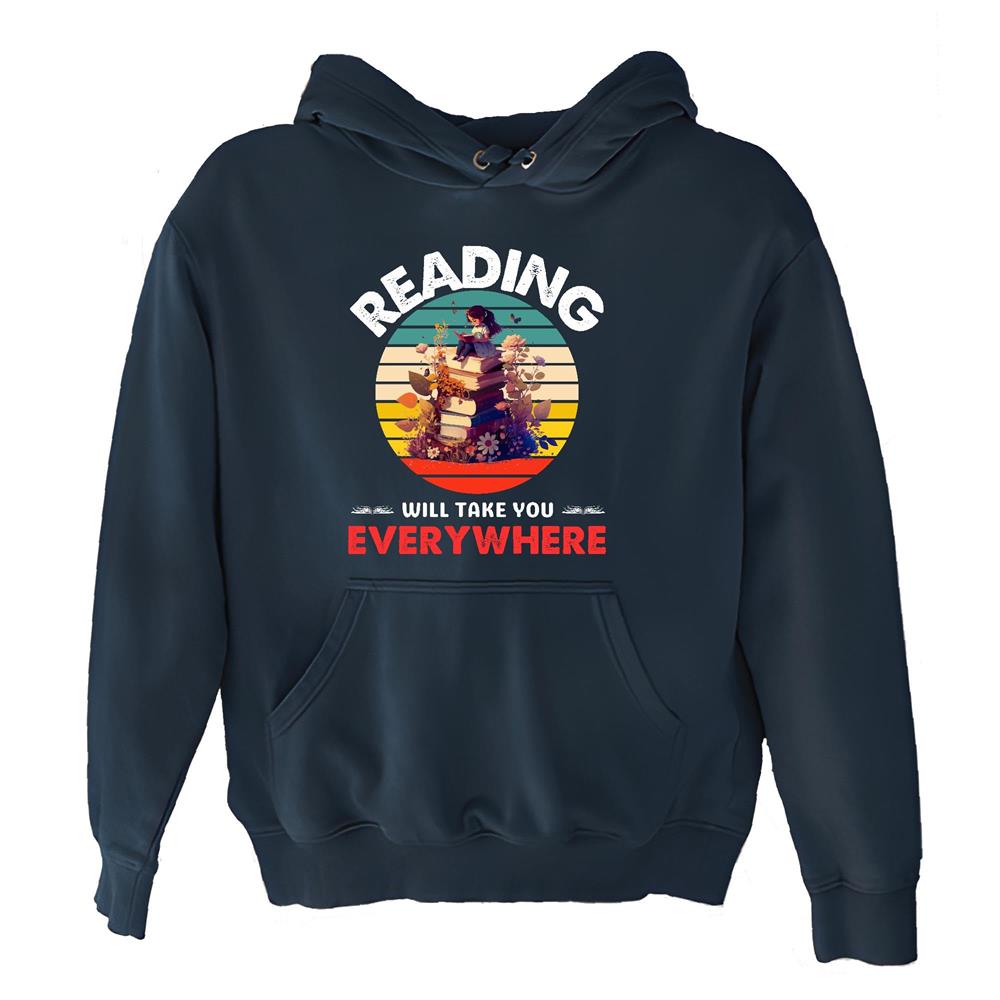 Reading will take you everywhere funny saying who Book addict Bookworm Navy and Muticolor Unisex Hoodie