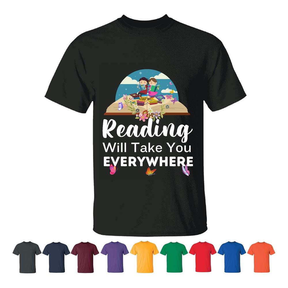 Reading Will Take You Everywhere Funny Tfor Book Addicts and Bookworms Men Women Black T shirt