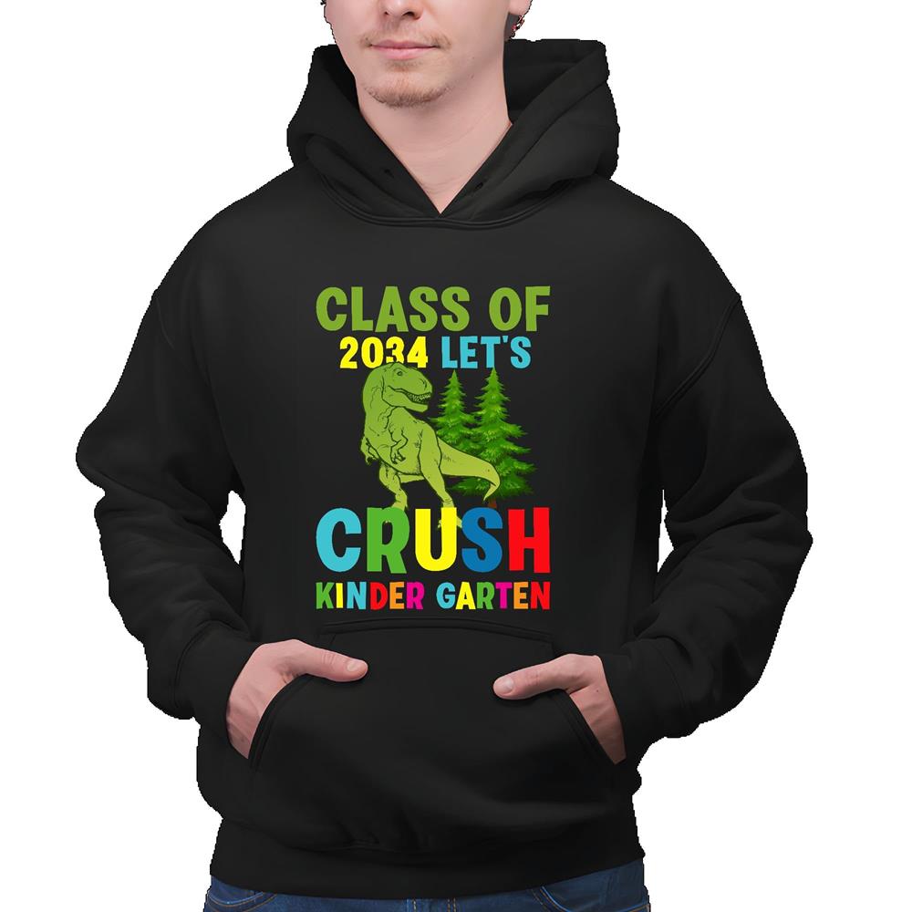 Ready to crush Kindergarten 2034 Back to School Dinosaurs graphic Black and Muticolor Unisex Hoodie