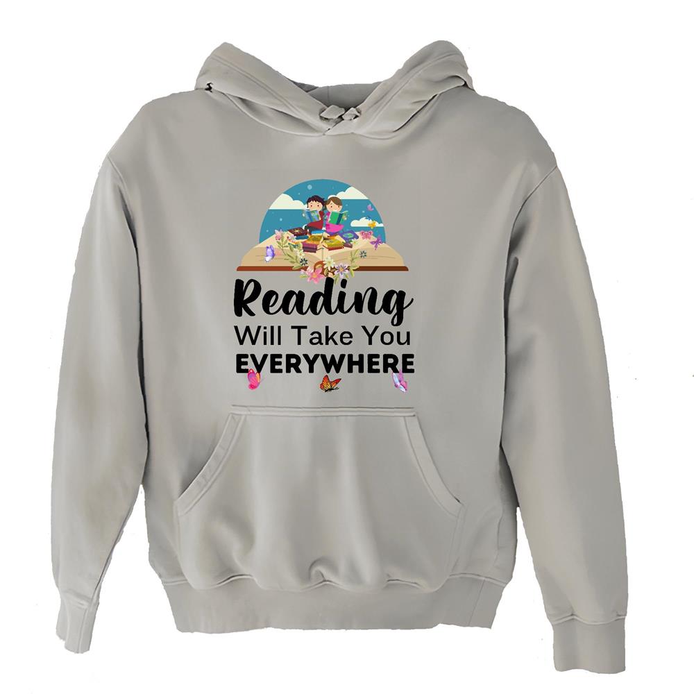 Reading will take you everywhere funny saying who Book addict Bookworm White and Muticolor Unisex Hoodie