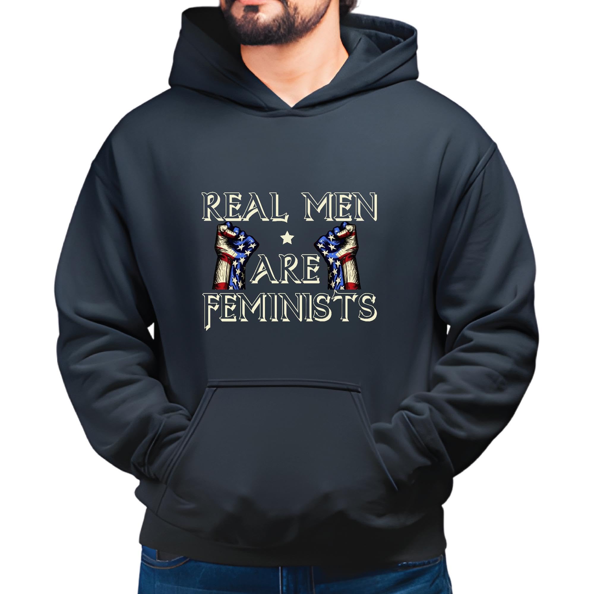 Real Men Support Feminism Gift Idea Black and Muticolor Unisex Hoodie