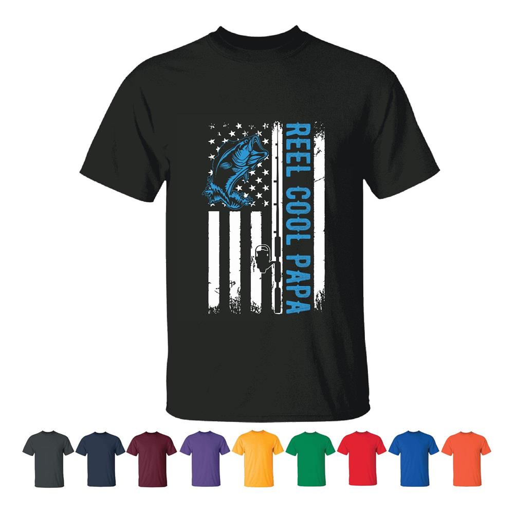 Reel Fishing Papa gift Men Women Black T shirt