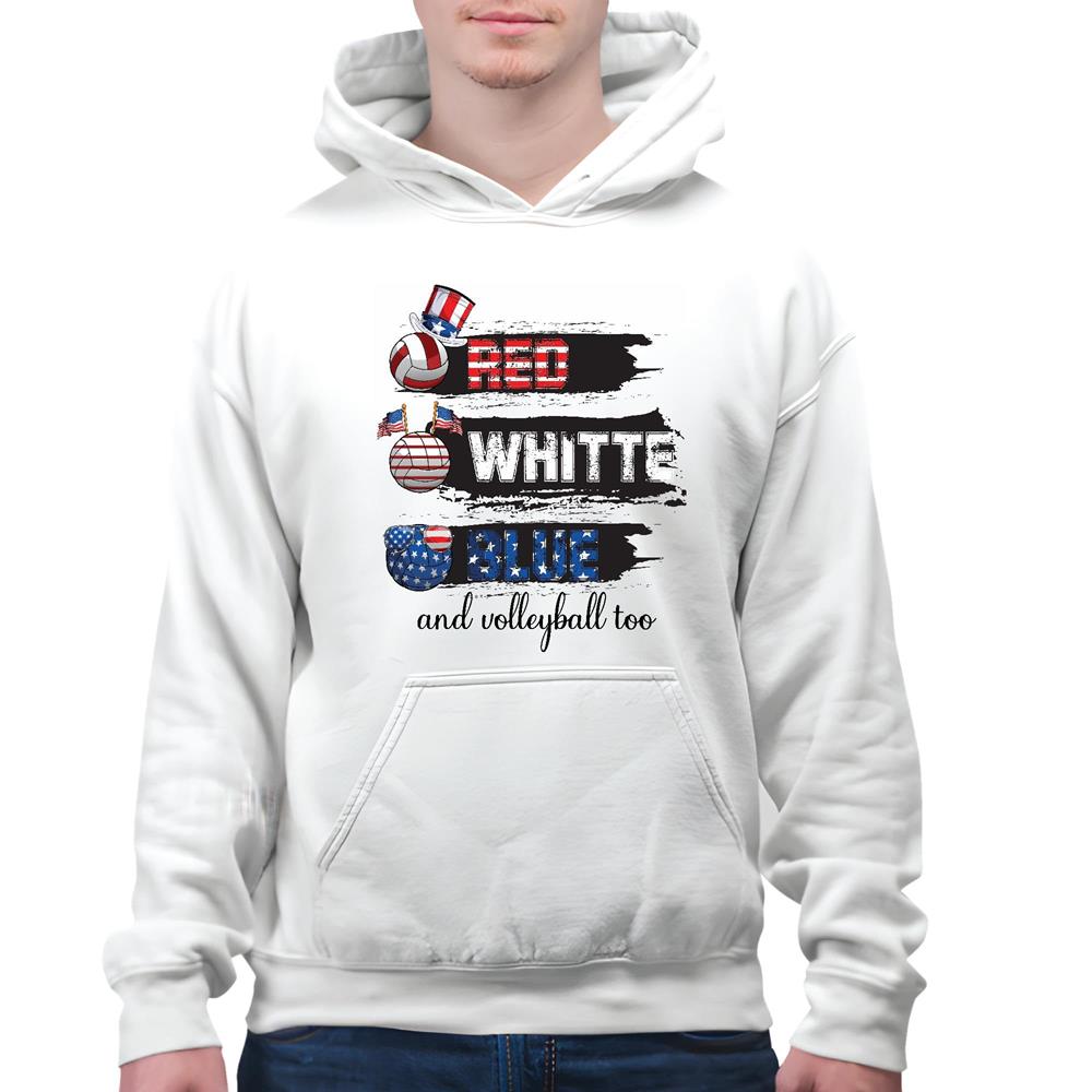 Red White Blue and Volleyball too US flag color for Volleyball Lover White and Muticolor Unisex Hoodie