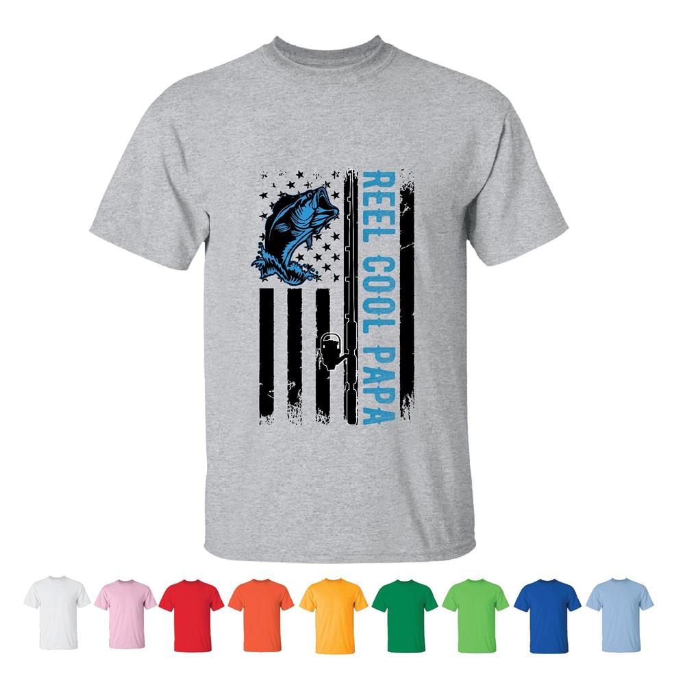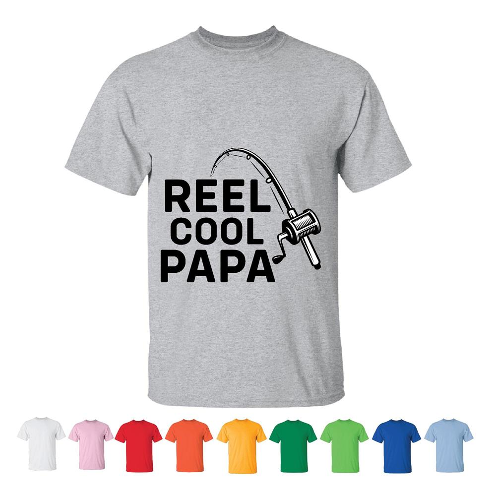 Reel Fishing Papa gift Men Women White Gray T shirt
