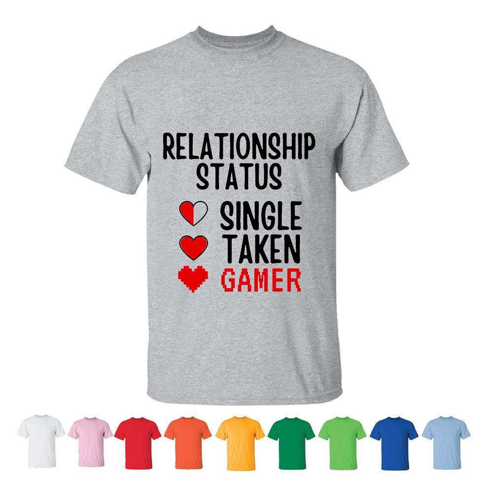Relationship status single taken Gamer funny for Video Gamer lover Men Women White Gray T shirt