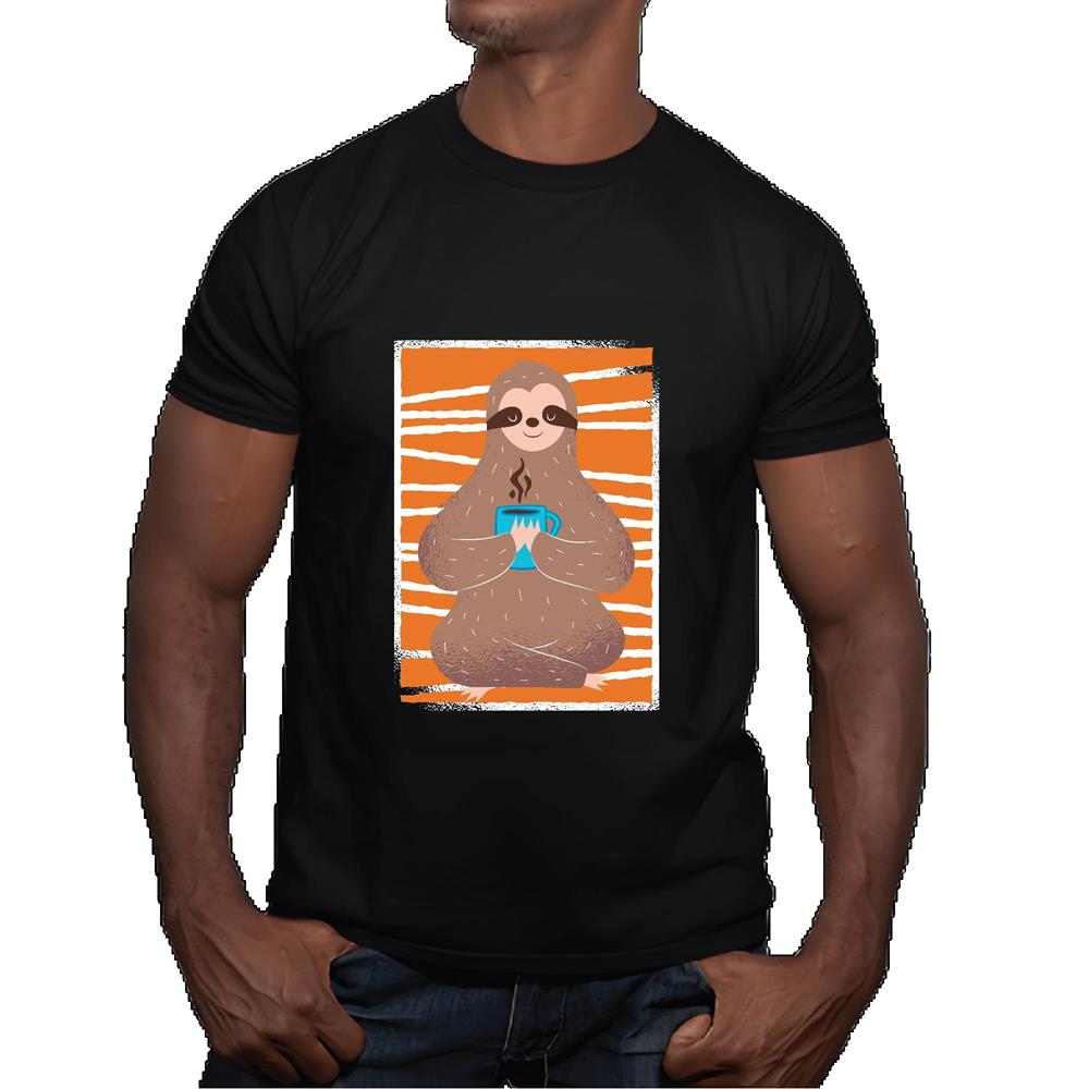 Relaxed Sloth Drinking Coffee Gift for Animal Lovers for All Ages Men Women Black Multicolor T shirt