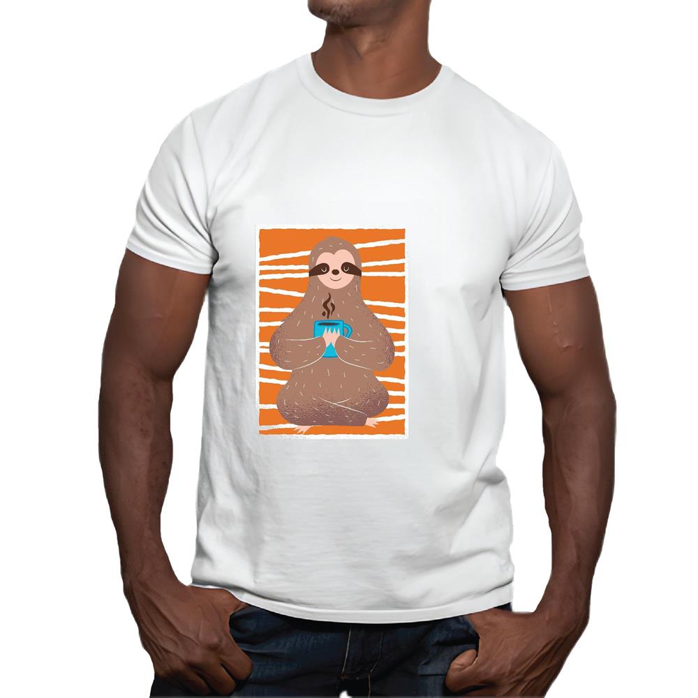 Relaxed Sloth Drinking Coffee Gift for Animal Lovers for All Ages Men Women White Gray Multicolor T shirt