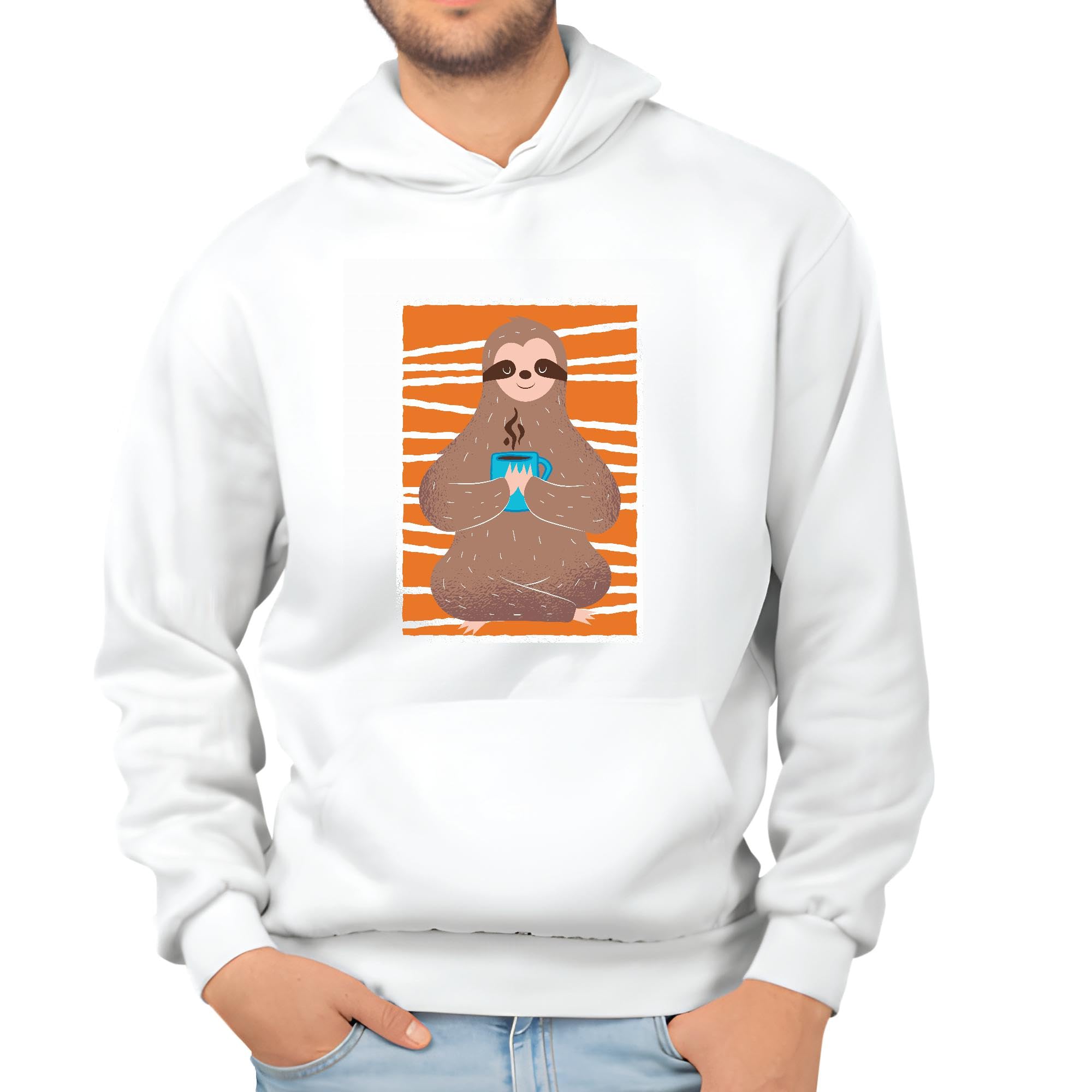 Relaxed Sloth Drinking Coffee Gift for Animal Lovers for All Ages White and Muticolor Unisex Hoodie