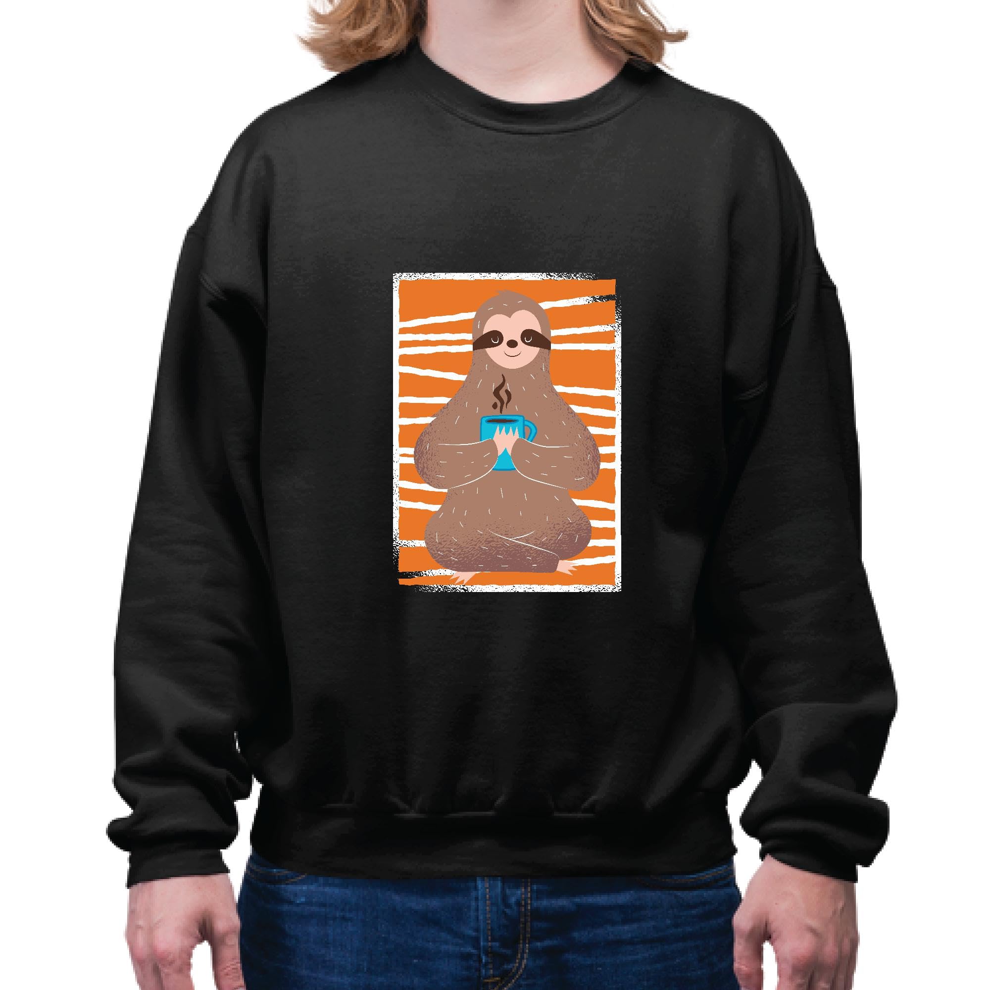 Relaxed Sloth Drinking Coffee Gift for Animal Lovers for All Ages Navy Black Muticolor Unisex Sweatshirt