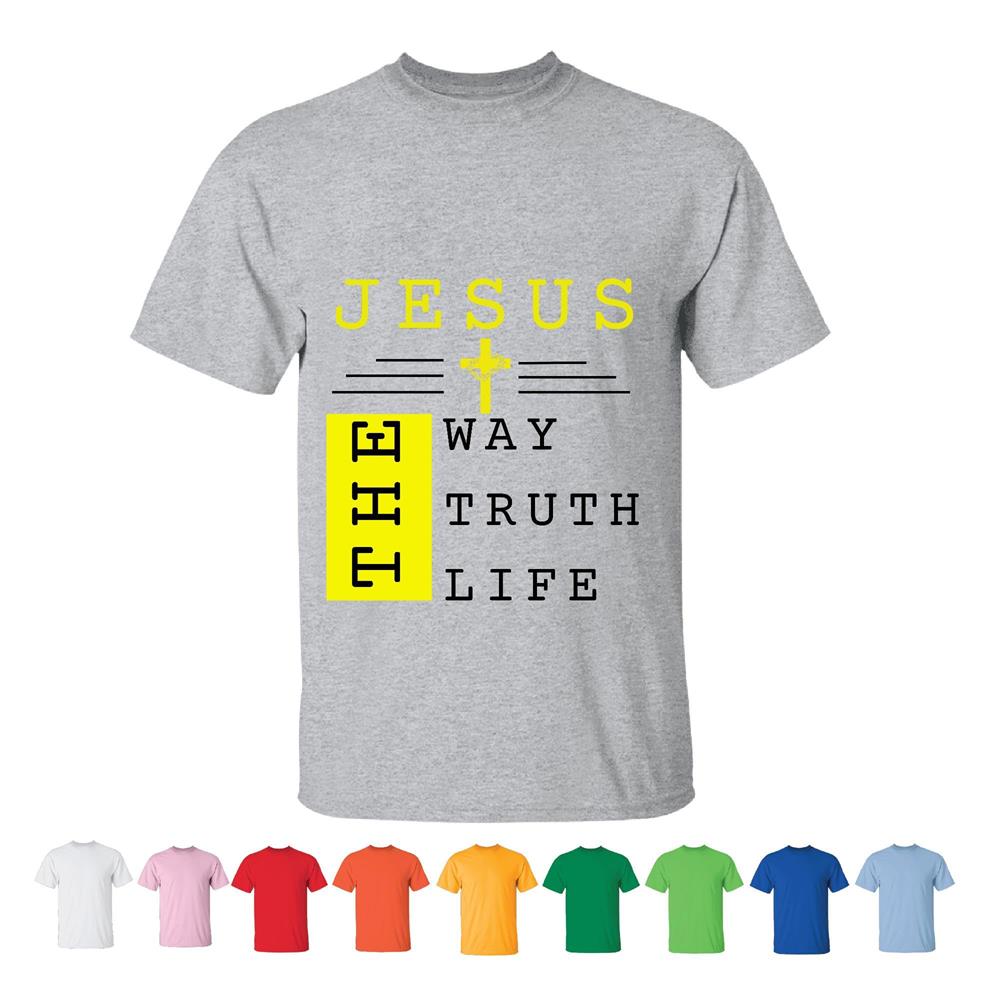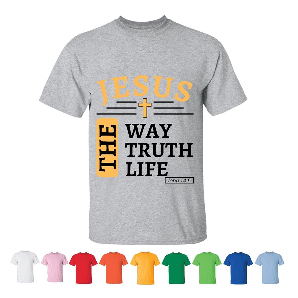 Religious Gift for Christian Bible Verse 14 6 Biblical Gospel Lovers Men Women White Gray T shirt