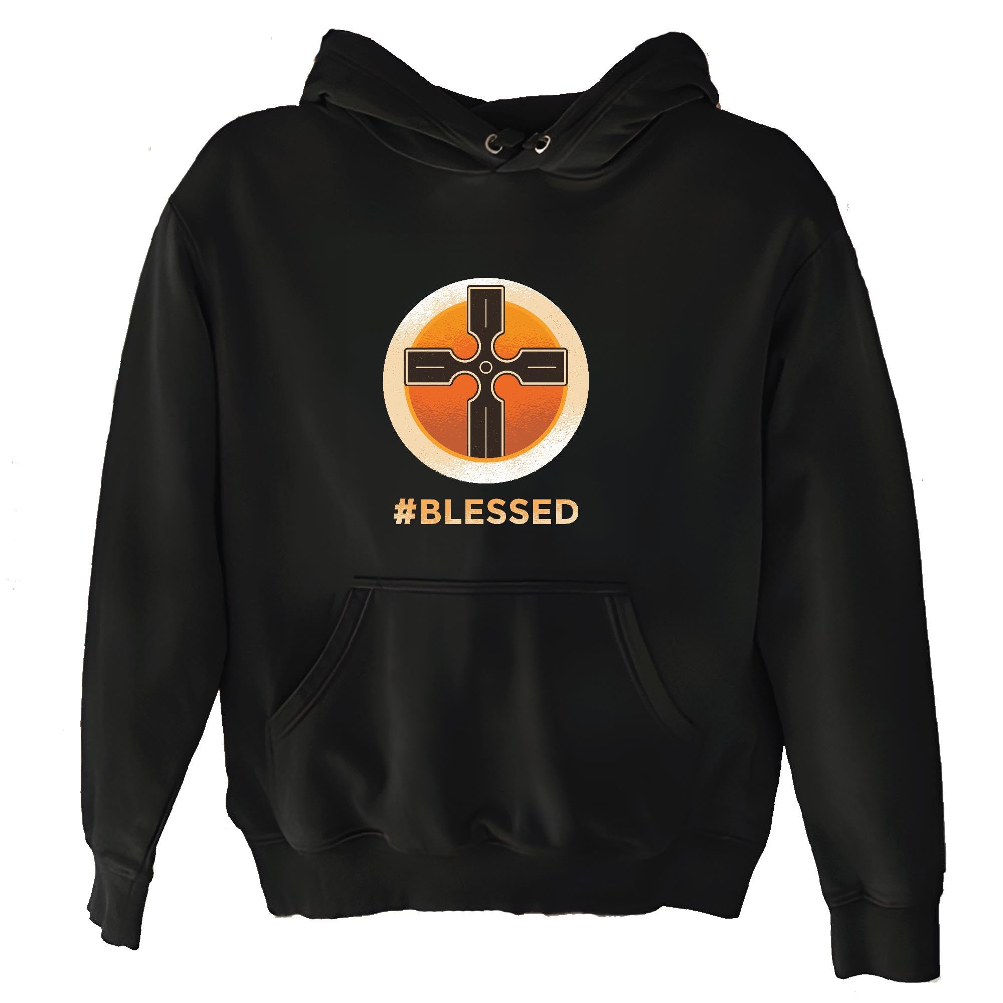 Religious Gift for Believers Cross in a Circle Symbol for Faithful Followers Black and Muticolor Unisex Hoodie