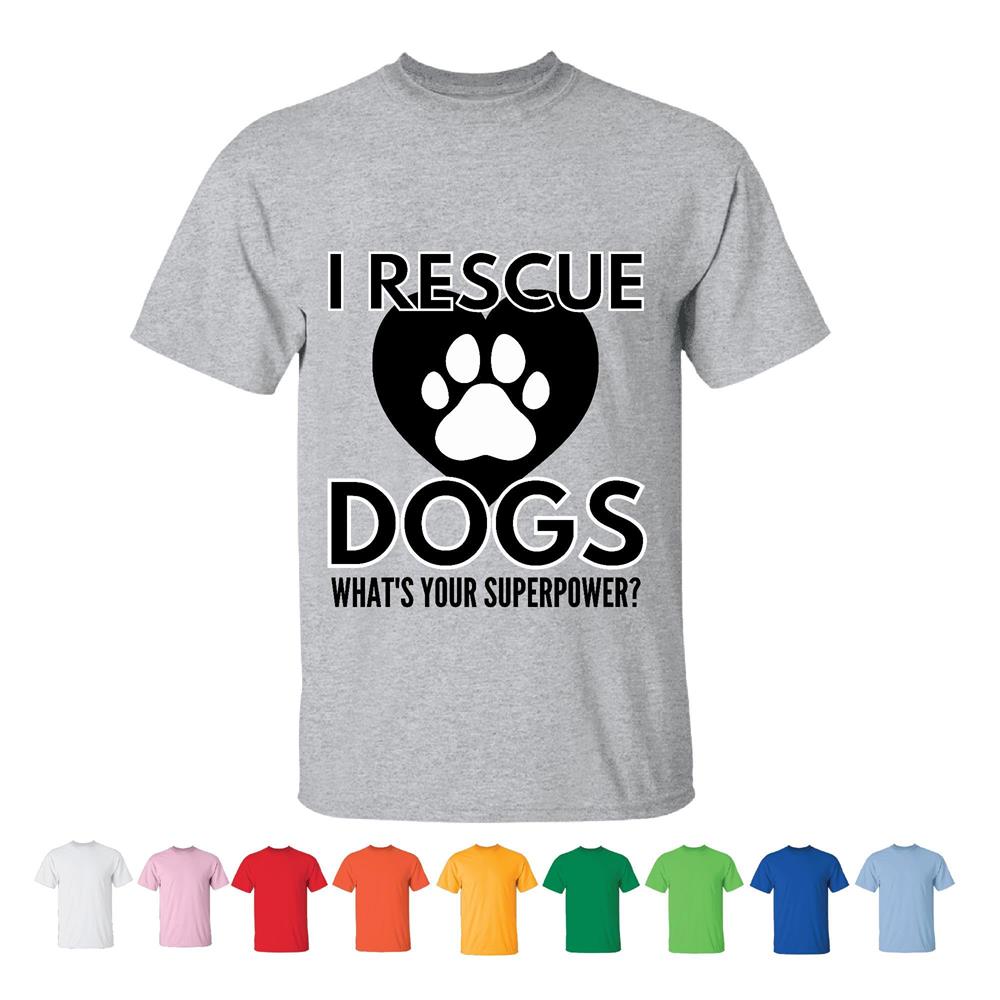 Rescue Dogs Superpower Funny Humor Idea for Dog Lovers Men Women White Gray T shirt