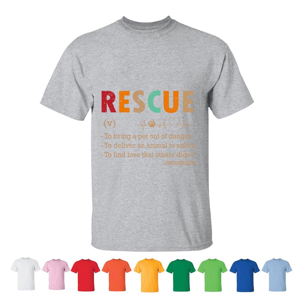 Rescue define to bring a pet out of danger to deliver an animal to safety for animal lovers Men Women White Gray T shirt