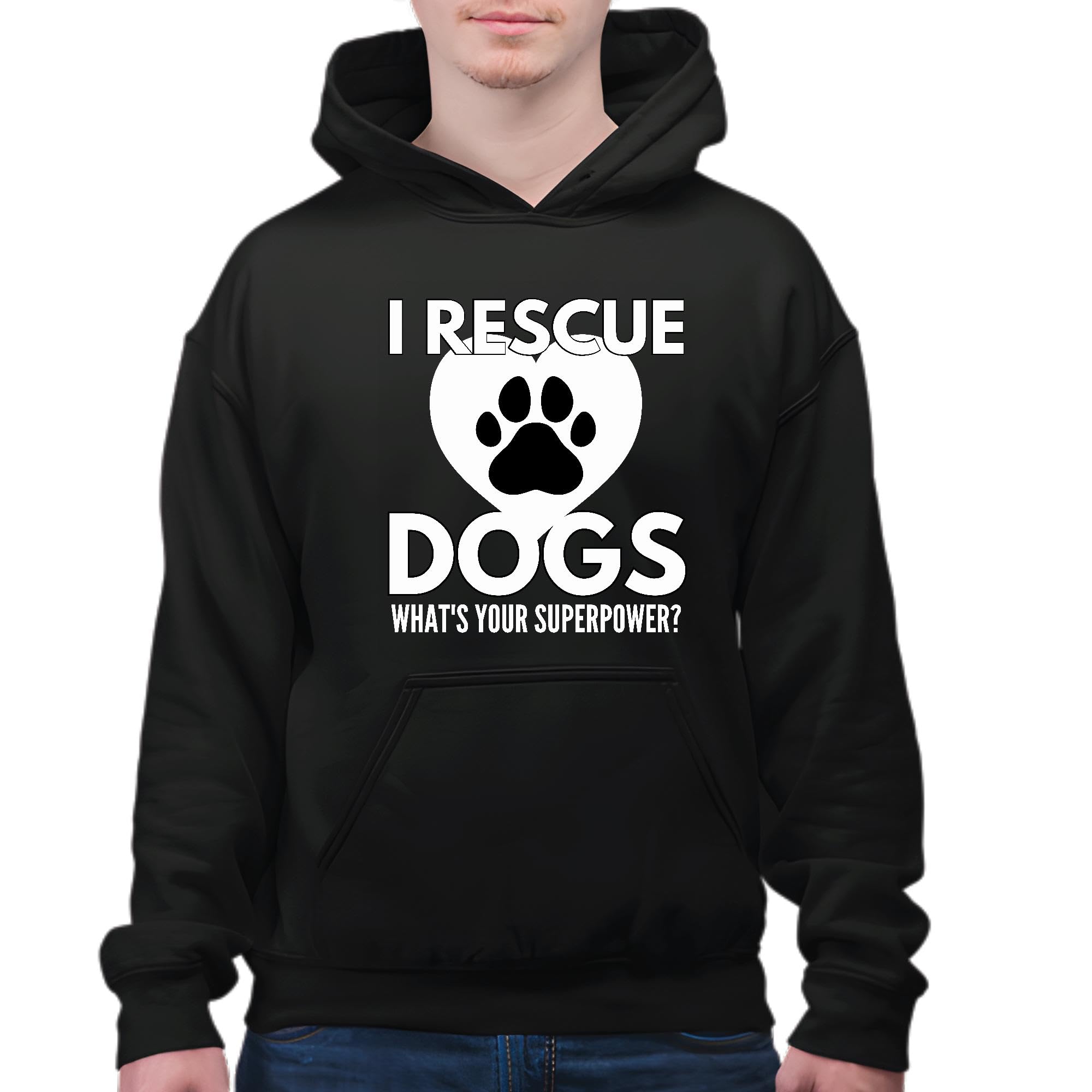 Rescue Dogs Superpower Funny Humor Idea for Dog Lovers Black and Muticolor Unisex Hoodie