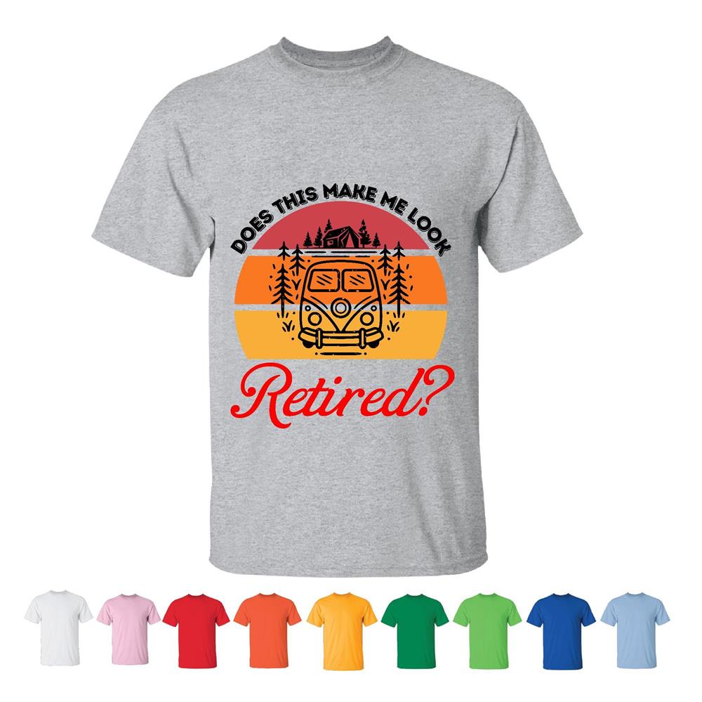 Retired Camping Retiree Gift 5th Wheel Camper RV Idea Perfect for Senior Campers Men Women White Gray T shirt