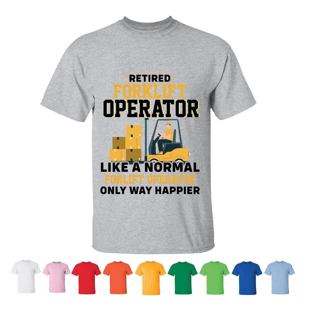 Retired Forklift Operator only way Happier Men Women White Gray T shirt