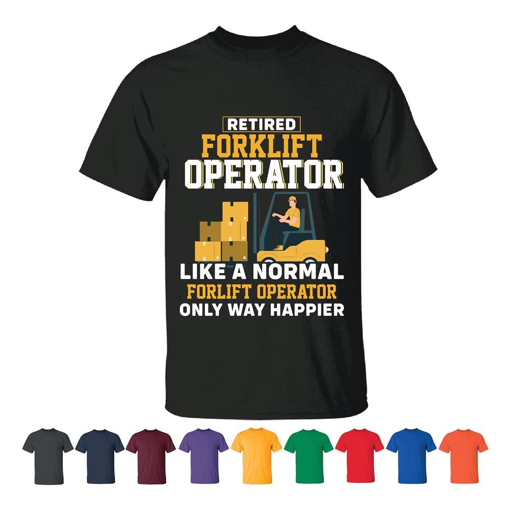 Retired Forklift Operator only way Happier Men Women Black T shirt