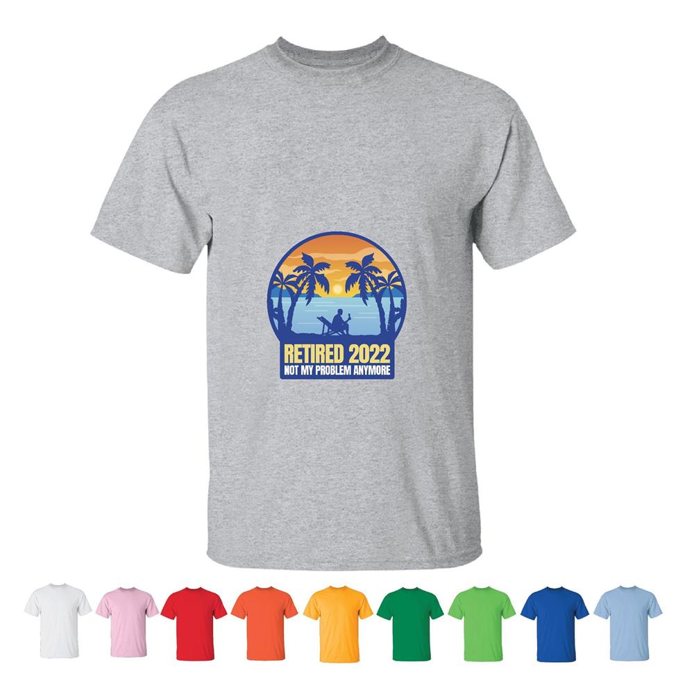 Retirement Gift 2022 Beach Sunset Quote Not My Problem Anymore Semi Flat Design for Retirees Men Women White Gray T shirt