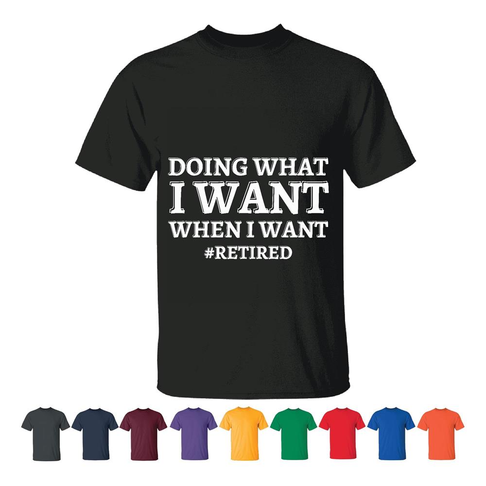 Retirement Gift Idea Funny Saying Doing What I Want When I Want Retired Men Women White Gray T shirt