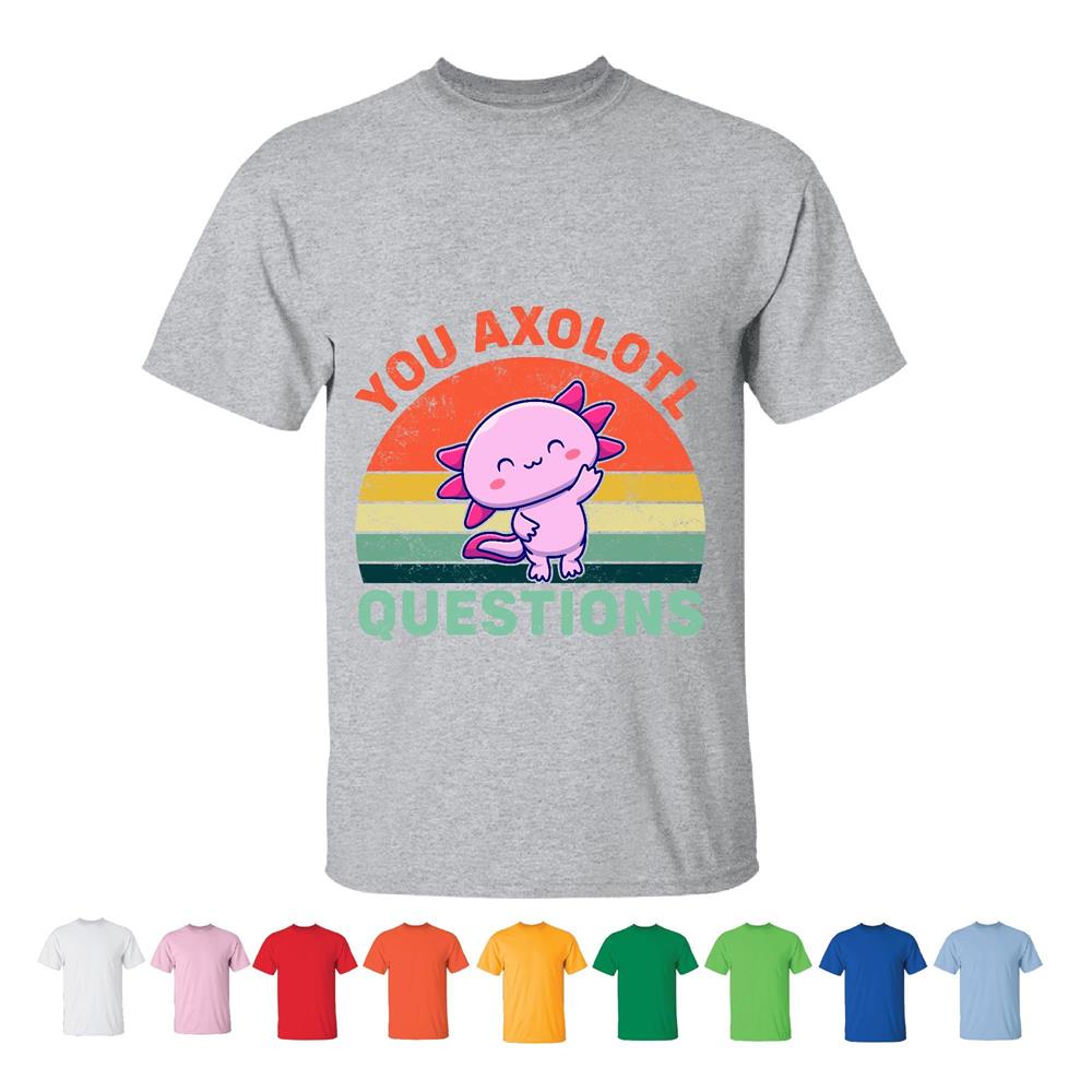 Retro 80s Axolotl Questions Funny Gifting Idea for Animal Lovers Men Women White Gray T shirt