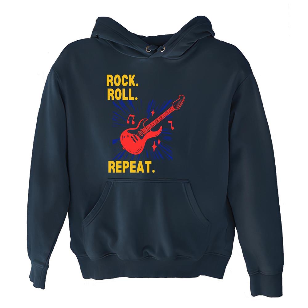 Retro 80s Vintage Punk Music Rock Roll for Musician Guitarist Navy and Muticolor Unisex Hoodie
