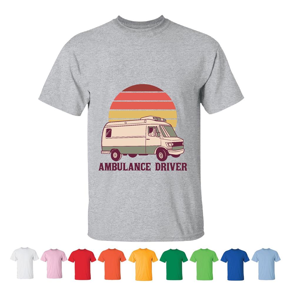 Retro Ambulance Driver Gift for Medicine Healthcare Professionals Men Women White Gray T shirt