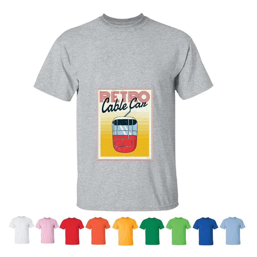 Retro Cable Car Skiing Sports Gift for Ski Lovers and Sports Enthusiasts Men Women White Gray T shirt