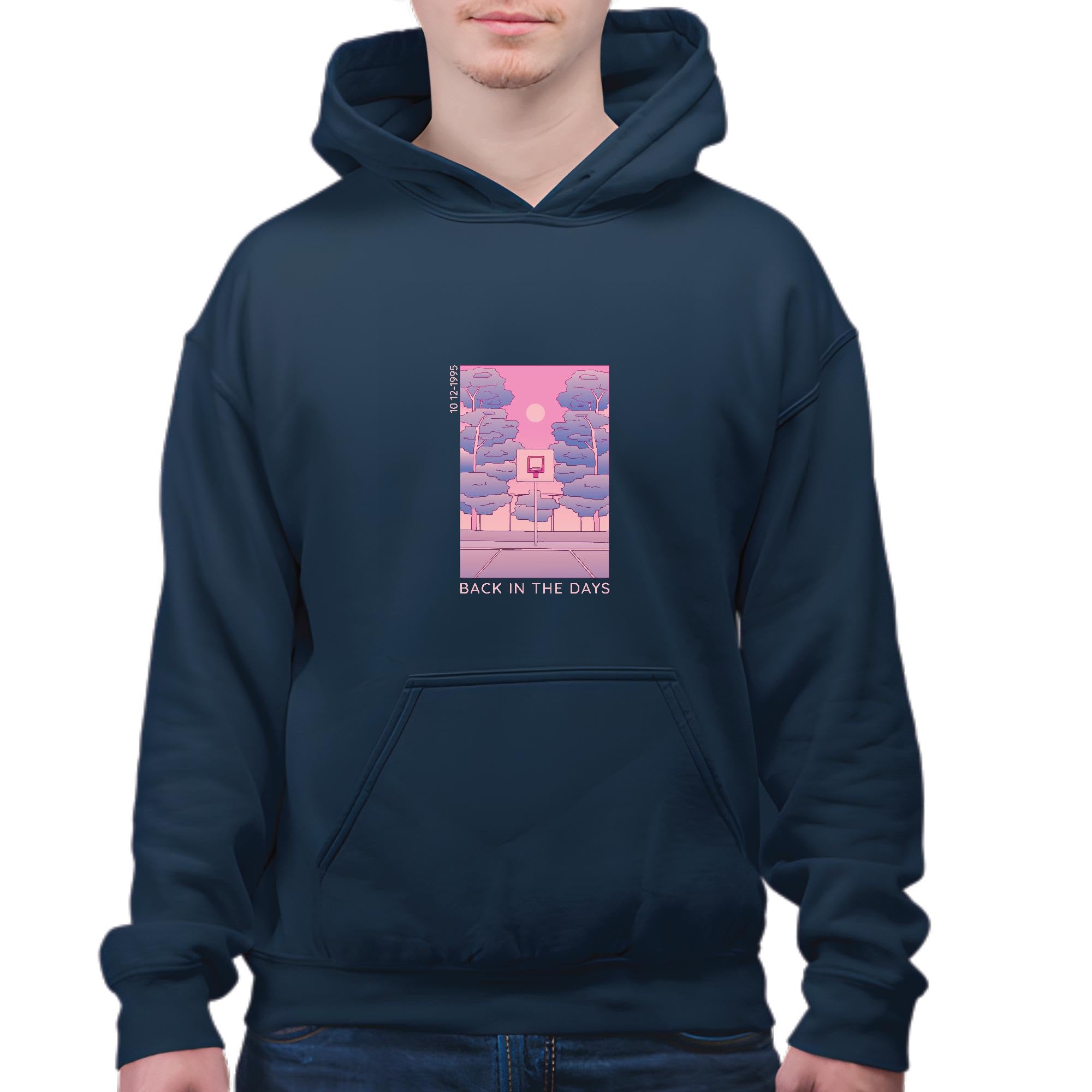 Retro Basketball Court Gift for Nostalgia Lovers for All Ages Navy and Muticolor Unisex Hoodie
