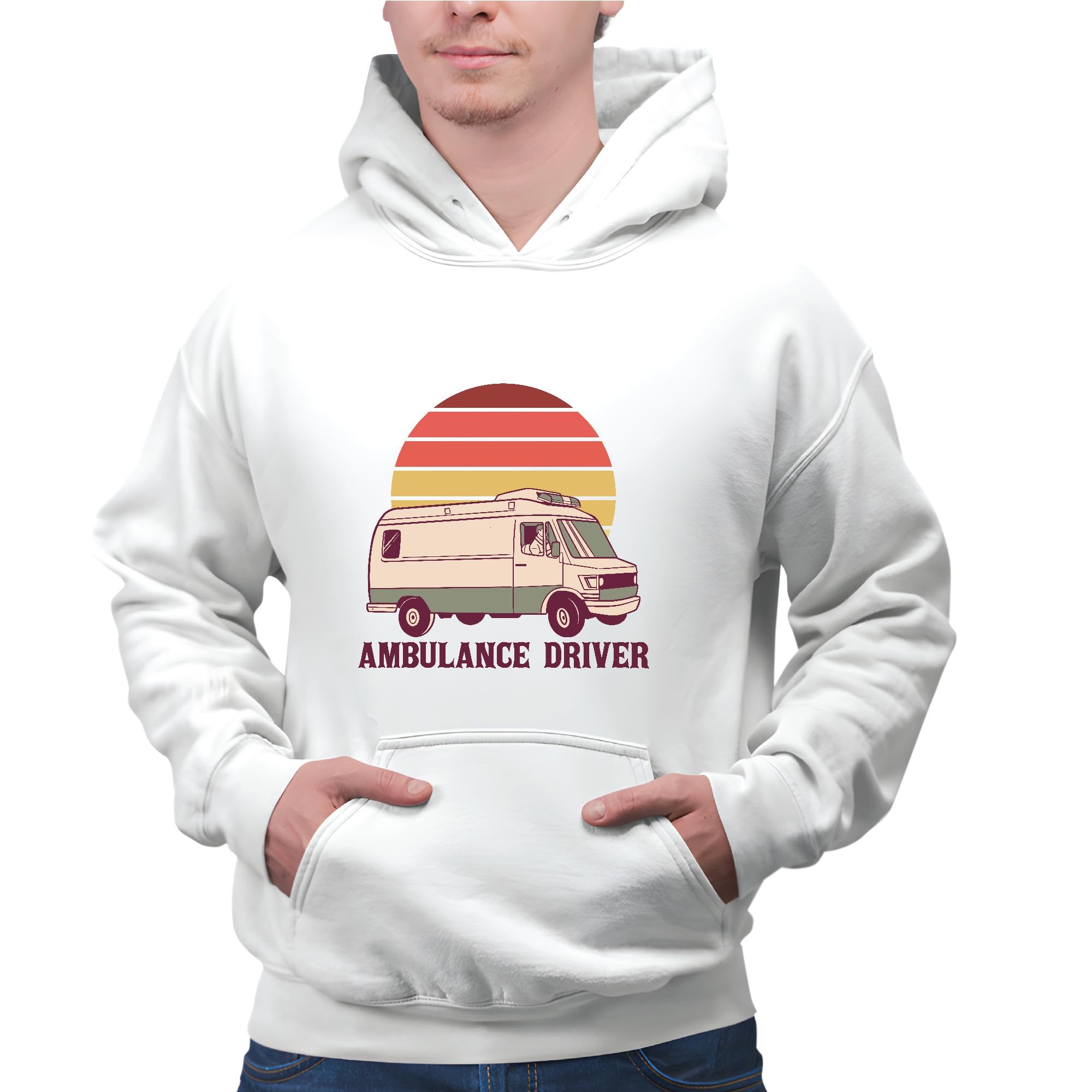 Retro Ambulance Driver Gift for Medicine Healthcare Professionals Gray and Muticolor Unisex Hoodie