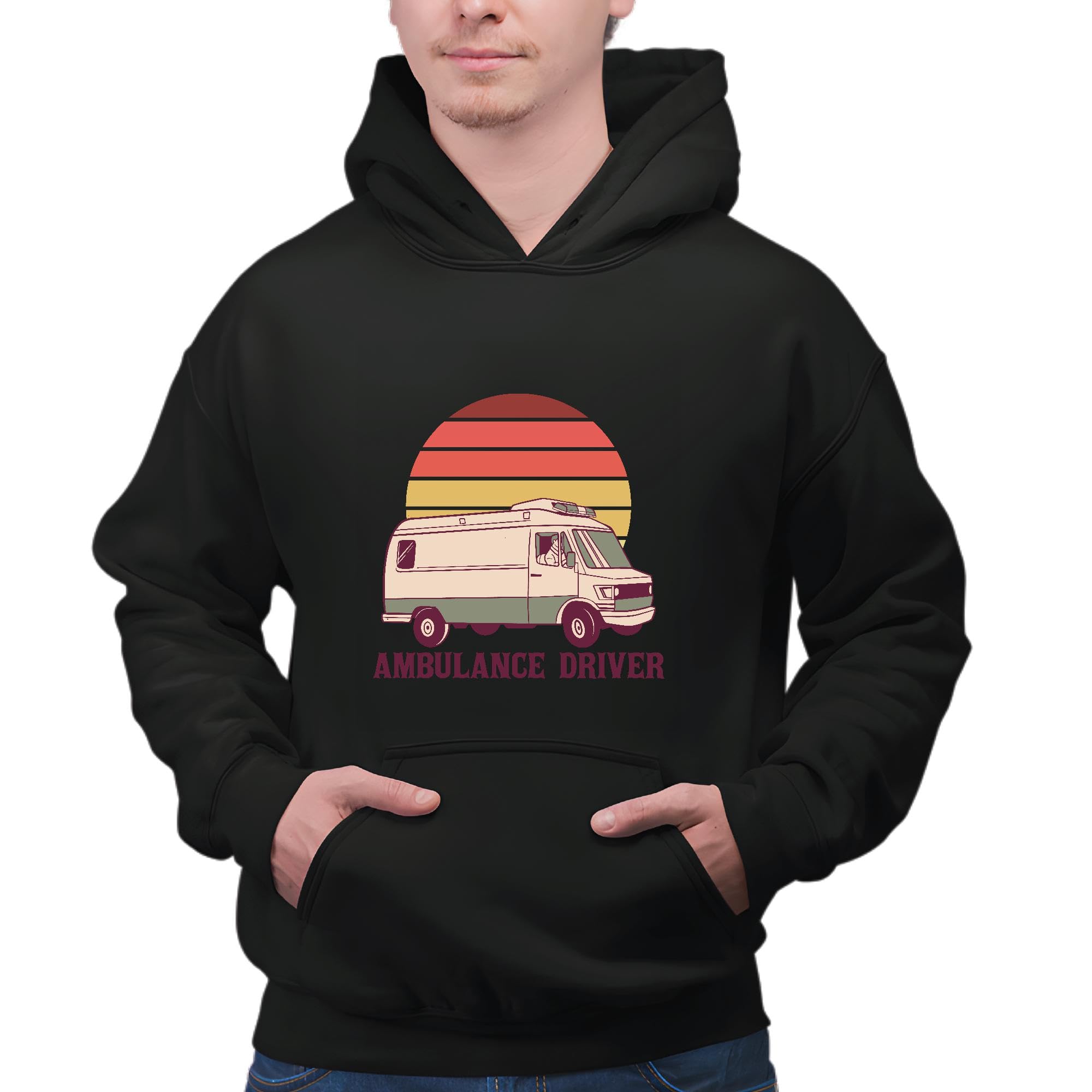 Retro Ambulance Driver Gift for Medicine Healthcare Professionals Black and Muticolor Unisex Hoodie