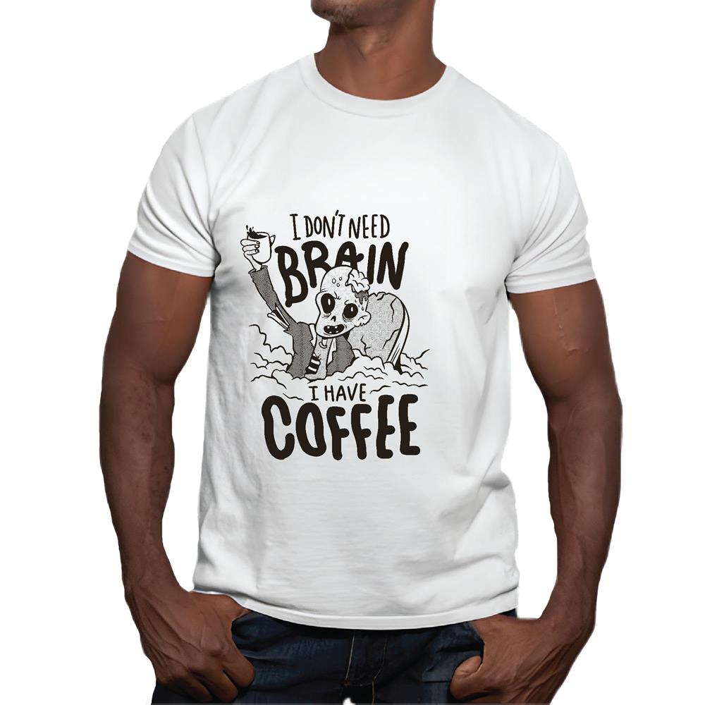 Retro Cartoon Style Coffee Quote Gift for Coffee Lovers Brainless On Coffee Men Women White Gray Multicolor T shirt