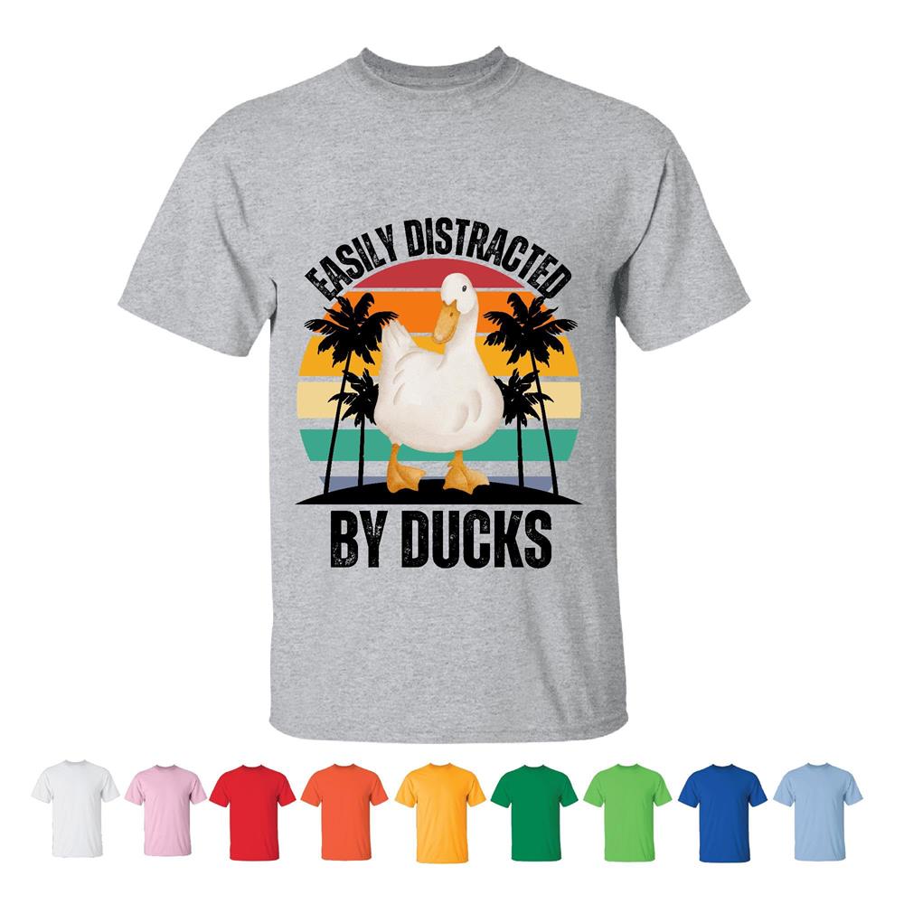 Retro Duck Easily Distracted By Waterfow Men Women White Gray T shirt