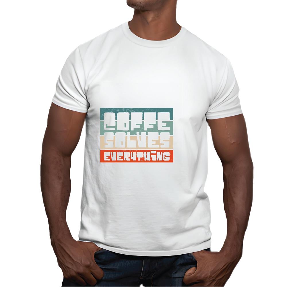 Retro Coffee Gift Quote Coffee Solves Everything Gift for Coffee Lovers Men Women White Gray Multicolor T shirt