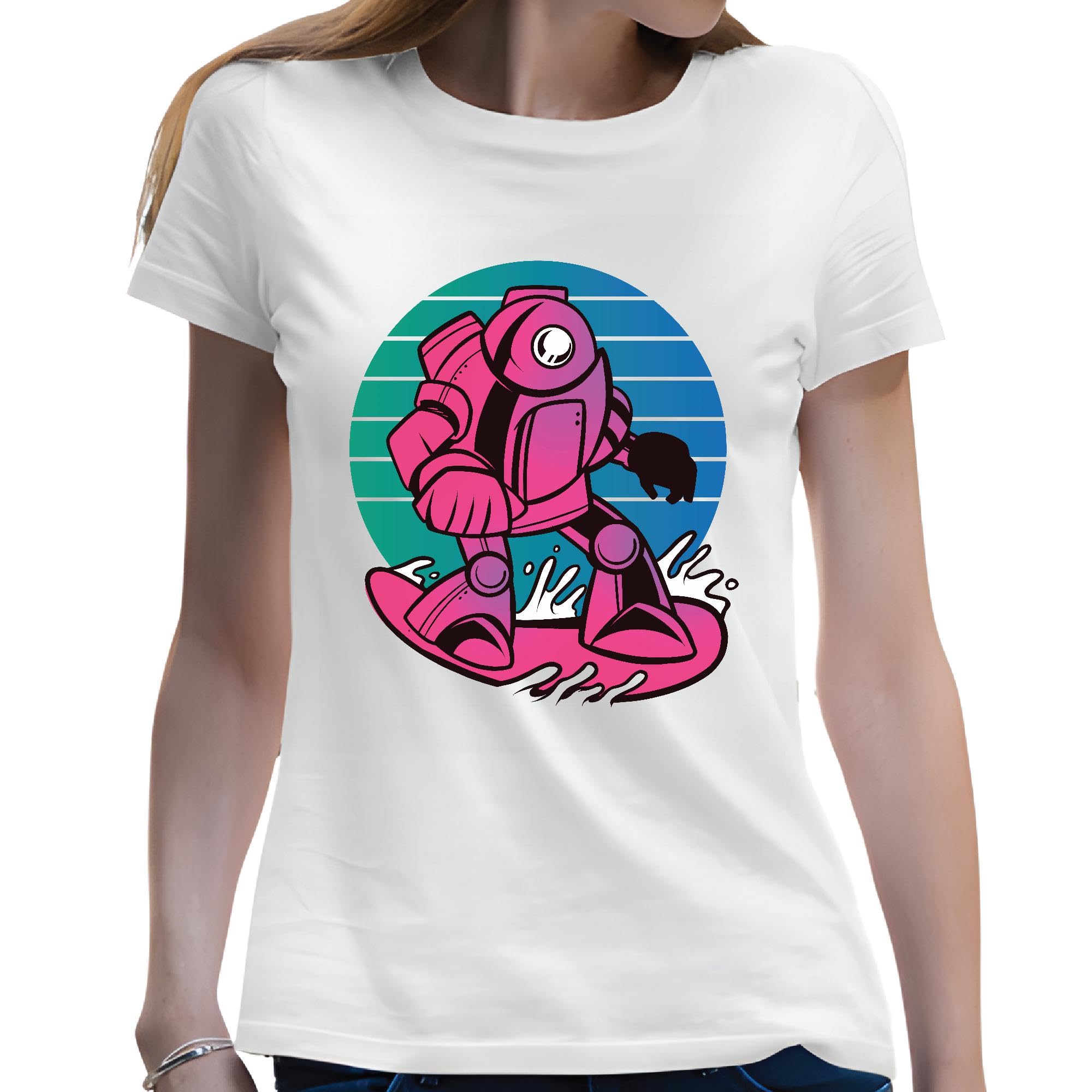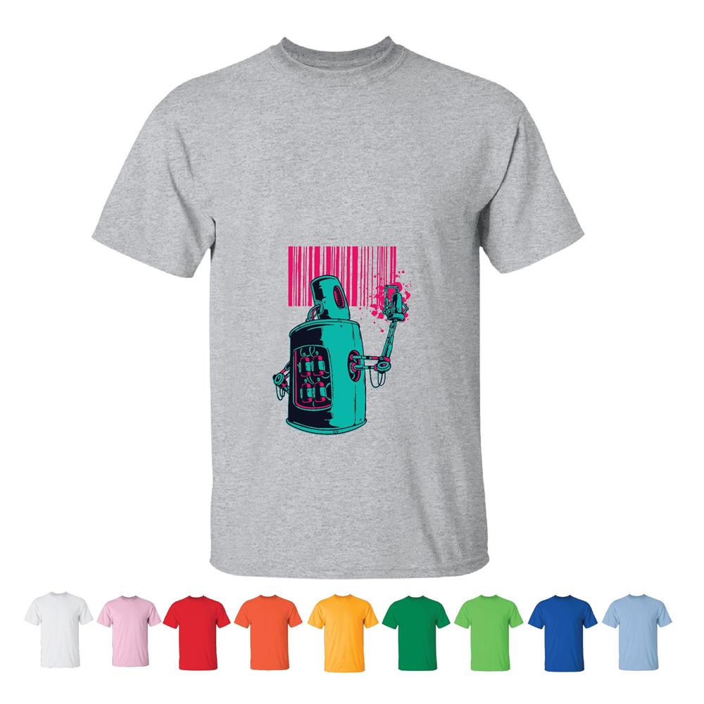 Retro Robot Graffiti Illustration Gift for Teens and Adults Neon Colors Men Women White Gray T shirt