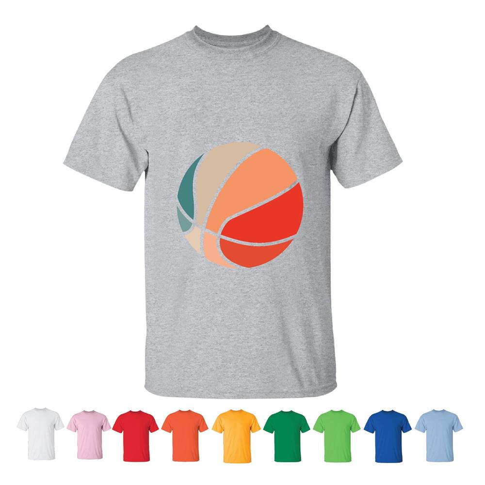 Retro Sunset Basketball Ball Gift for Sports Fans and Athletes Men Women White Gray T shirt