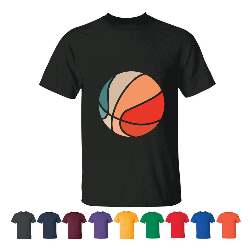 Retro Sunset Basketball Ball Gift for Sports Fans and Athletes Men Women Black T shirt