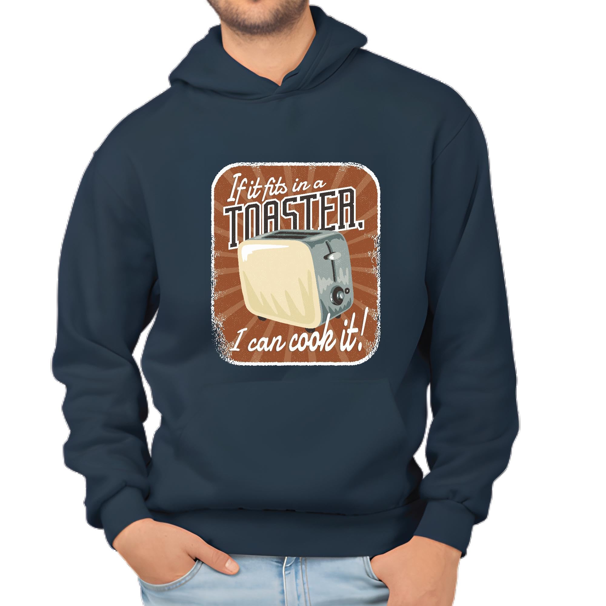 Retro Styled Cooking Quote Illustration Gift for Home Cooks and Chefs Navy and Muticolor Unisex Hoodie
