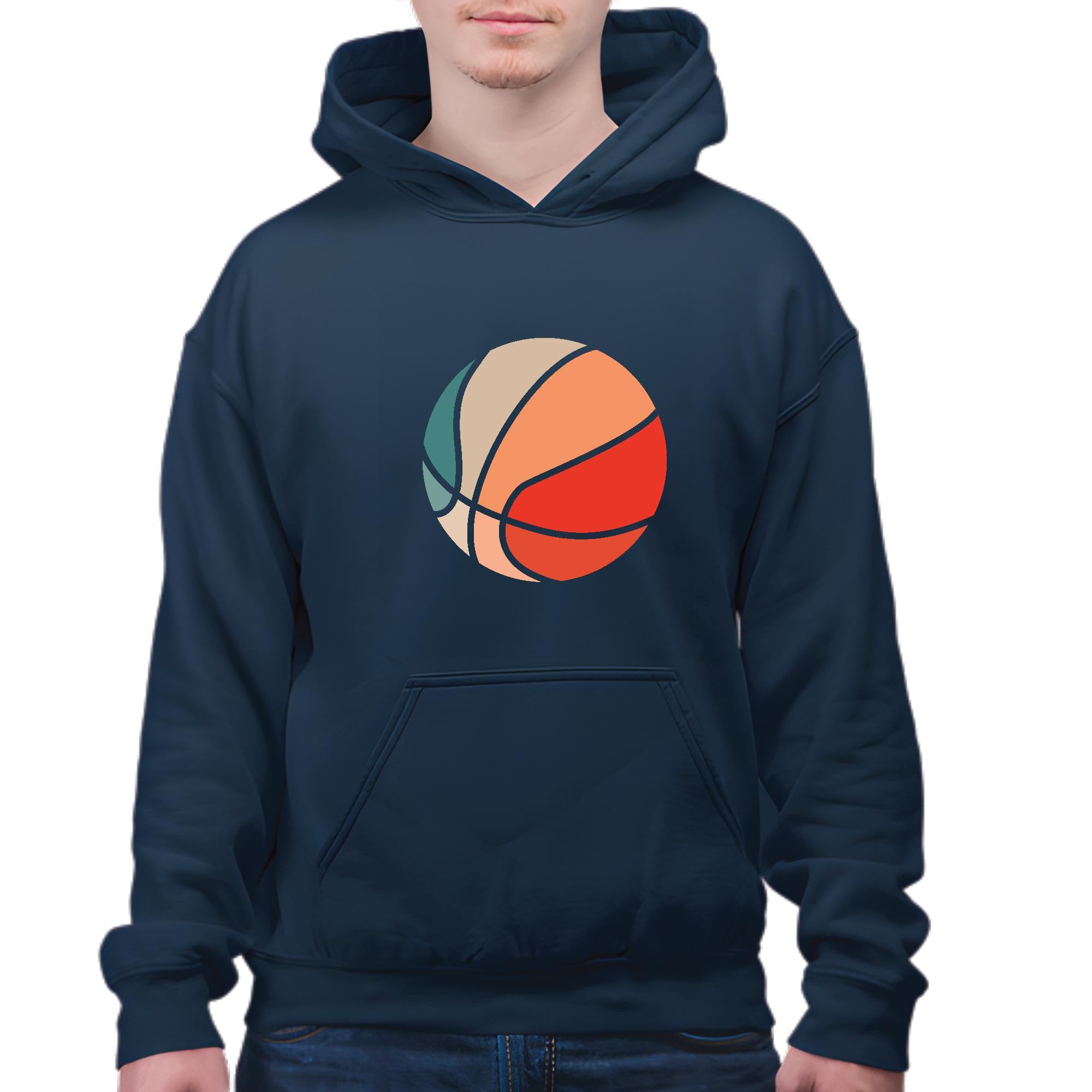 Retro Sunset Basketball Ball Gift for Sports Fans and Athletes Navy and Muticolor Unisex Hoodie