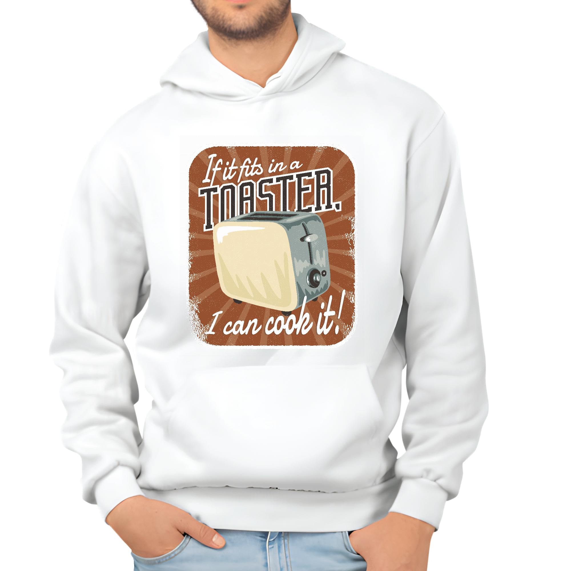Retro Styled Cooking Quote Illustration Gift for Home Cooks and Chefs White and Muticolor Unisex Hoodie