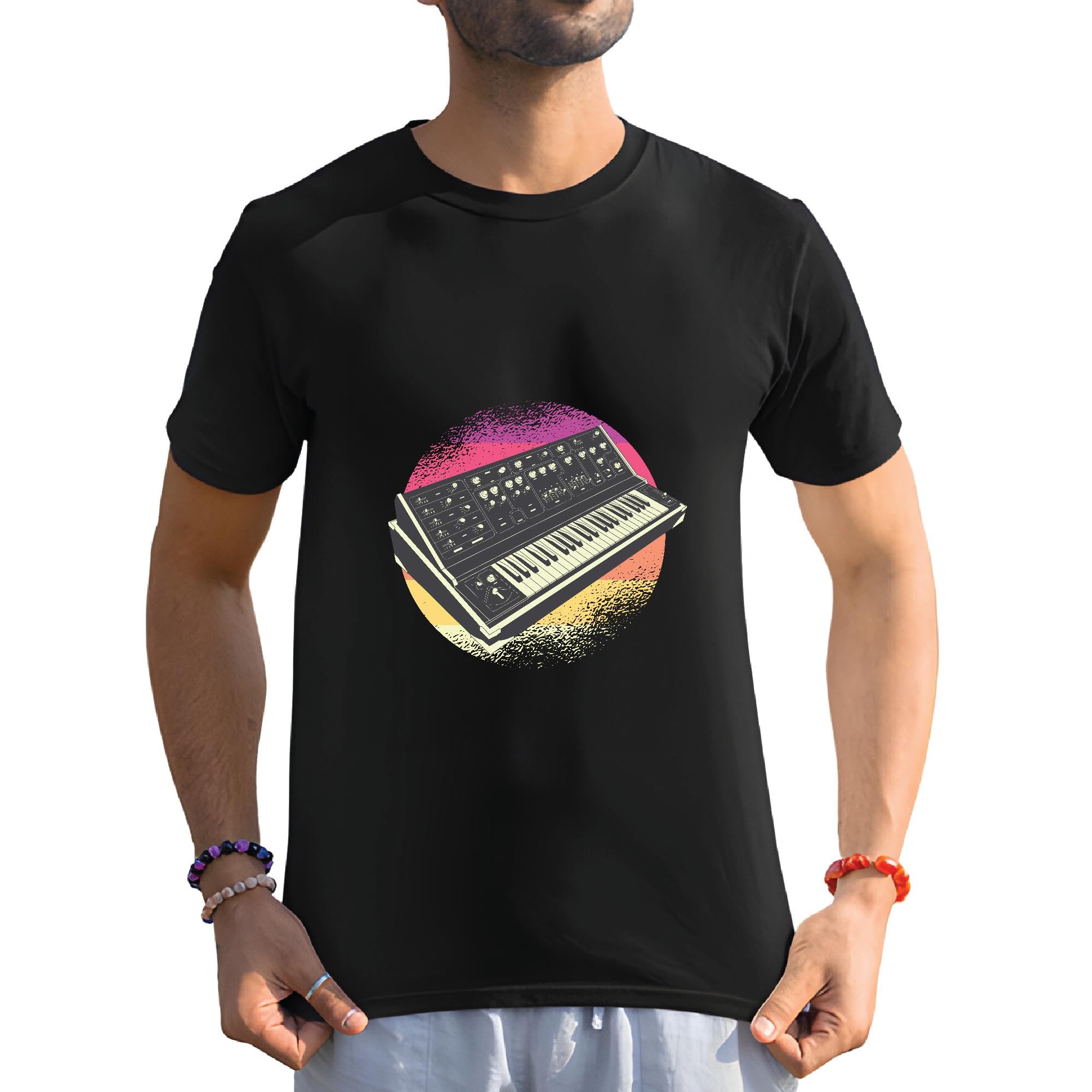Retro Style Synthesizer Music Instrument Gift for Musicians and Music Lovers Men Women Black Multicolor T shirt