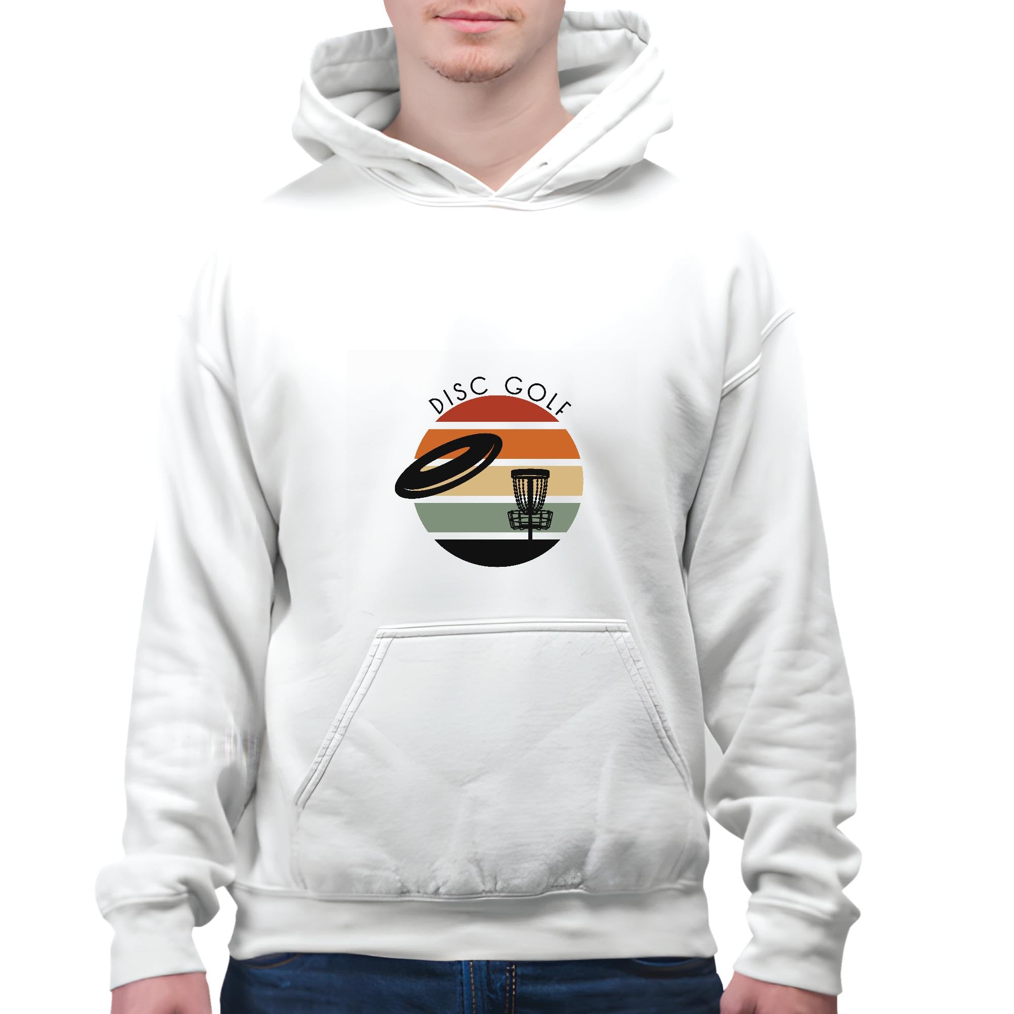 Retro Style Disc Golf Gift Ideas for Disc Golfers White and Muticolor Unisex Hoodie