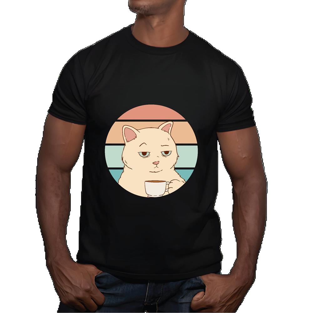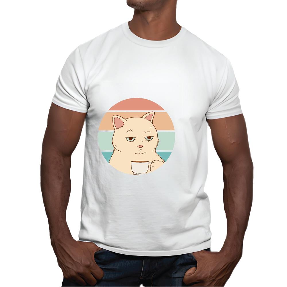 Retro Sunset Cat Coffee Gift for Cat Lovers Unique Present Idea for Everyone Men Women White Gray Multicolor T shirt