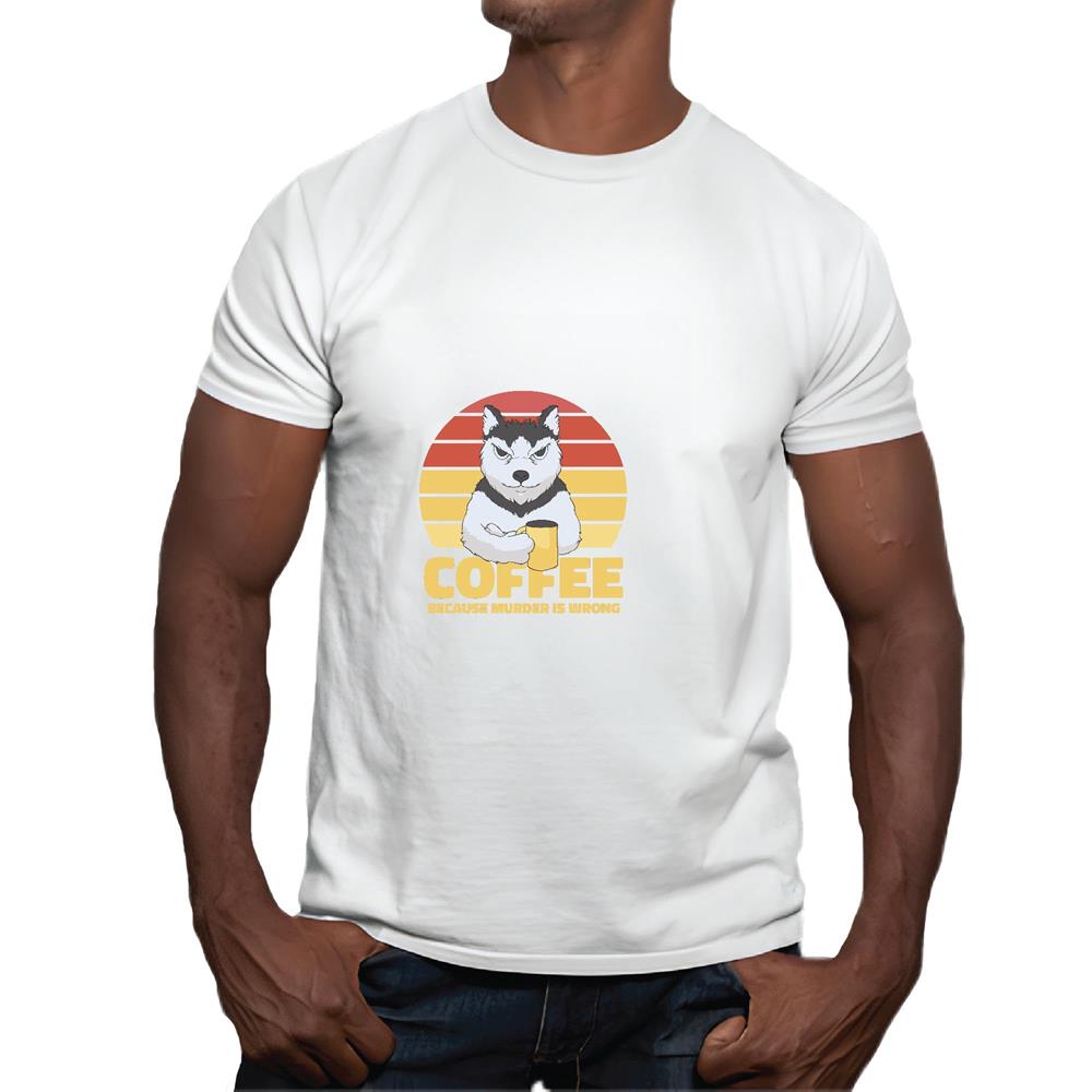 Retro Sunset Coffee Gift for Dog Lovers Present for Animal Admirers Men Women White Gray Multicolor T shirt