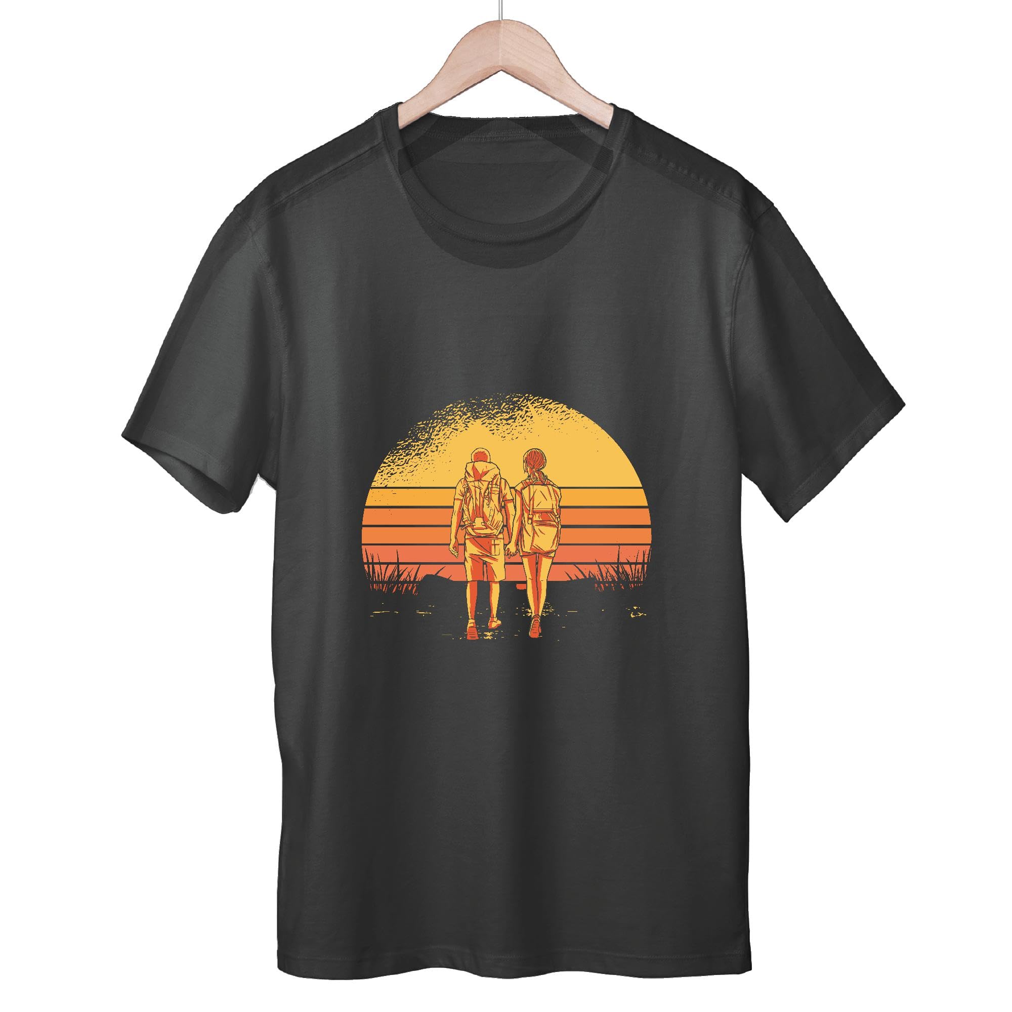 Retro Sunset Hiking Gift for Couples Climbing Adventure Men Women Black Multicolor T shirt