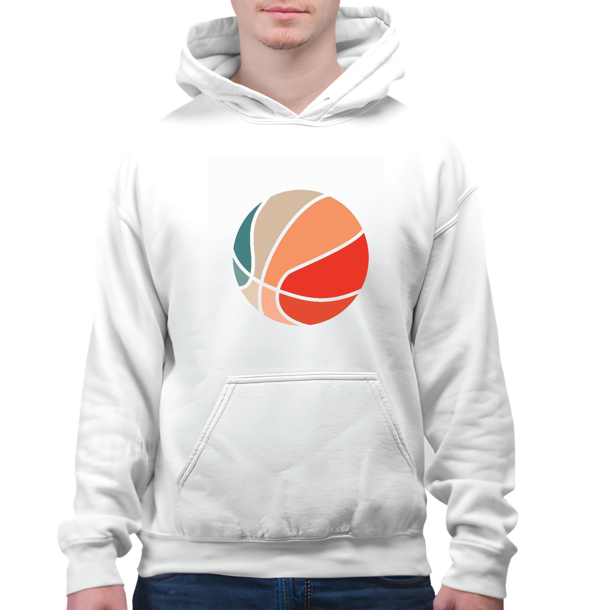 Retro Sunset Basketball Ball Gift for Sports Fans and Athletes White and Muticolor Unisex Hoodie