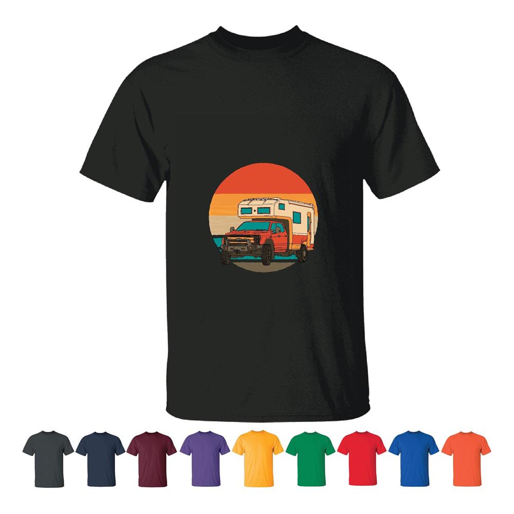 Retro Sunset Offroad Camper Van Gift for Camping Enthusiasts Men Women Black T shirt